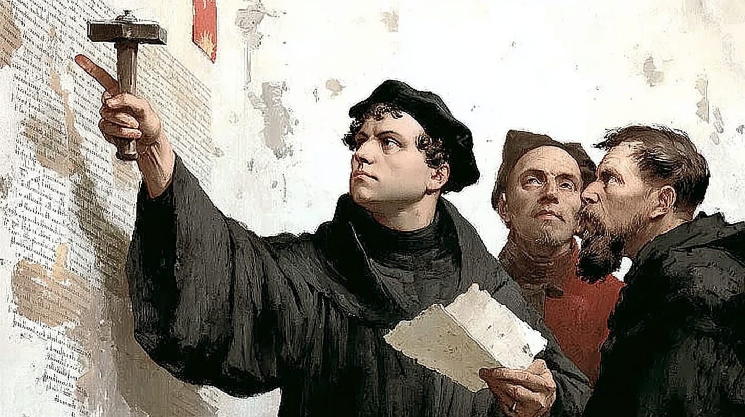 October 31, 1517. Wittenberg, Germany. A 34-year-old Augustinian monk and theology professor named Martin Luther walked up to the Castle Church door—which functioned as the community bulletin board—and nailed up a document. Ninety-five theses. Ninety-five grievances against the Roman Catholic Church.