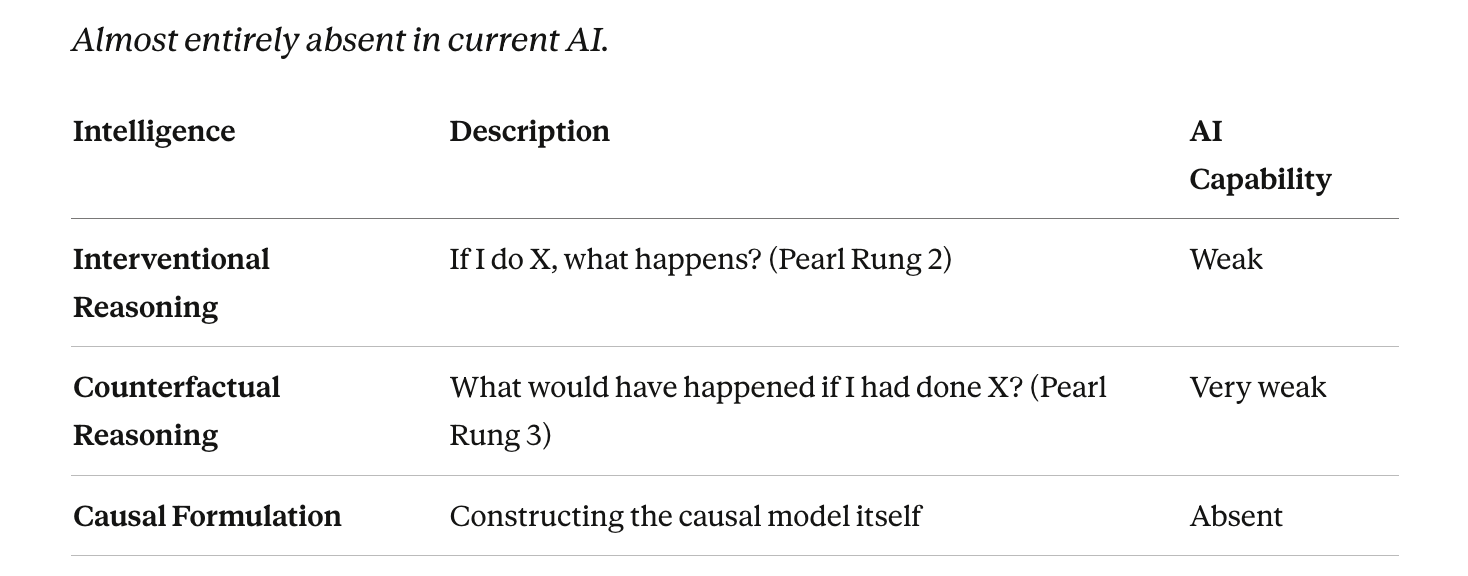 Pattern matching is genuine intelligence. It is just not sufficient intelligence. The catastrophic educational mistake is training humans to compete in Tier 1 at superhuman machine speed, while Tiers 4, 5, and 7 go almost completely unscaffolded.
