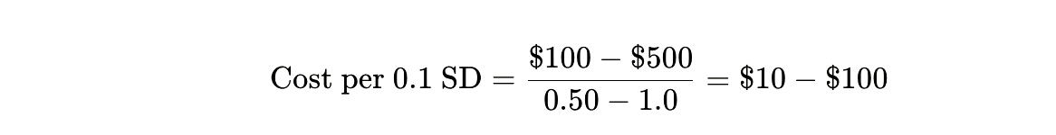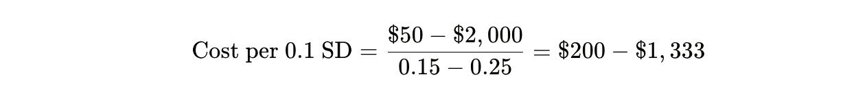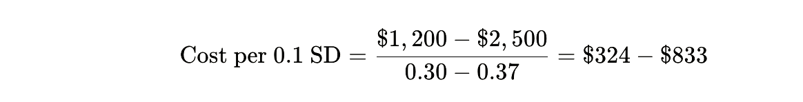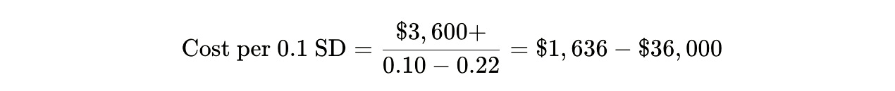 Here’s where narrative journalism intersects with cold mathematics. Let’s calculate the cost per 0.1 standard deviation gain in achievement—the “bang per buck” that actually matters.