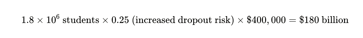 You’re looking at 1.8 million students who may not recover that lost ground. Research shows that students who aren’t proficient readers by third grade are four times more likely to drop out. The lifetime earnings difference between a high school graduate and dropout? Approximately $400,000.